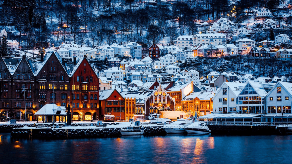 Božični čas na Norveškem zveni kot zasnežena pobočja in gore, prasketanje v kaminu, romantično osvetljene hiše ob fjordih, vožnje s sanmi, severni jeleni in pravljična božična doživetja. Na Norveškem je zima še posebej dolga, dnevi pa kratki in temni, zato si v božičnem času po domovih pričarajo tisto res pravo, čarobno praznično vzdušje.