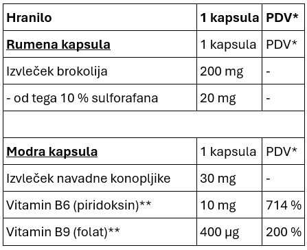 - Z izvlečkom brokolija, navadno konopljiko in 5-HTP