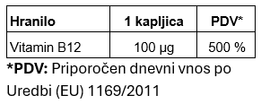 Aktivna učinkovina v enem odmerku: 100 µg vitamina B12 na kapljico