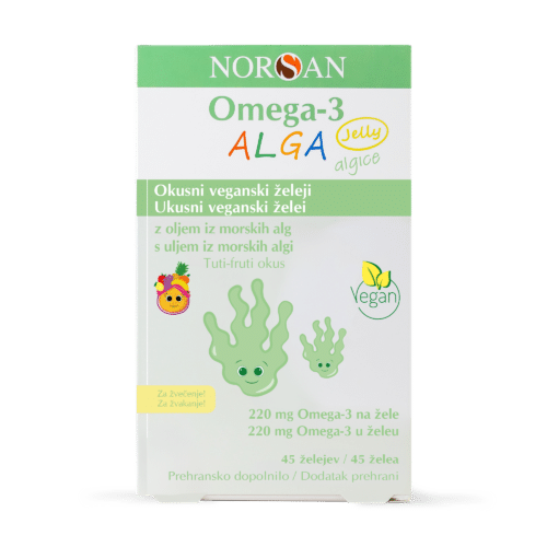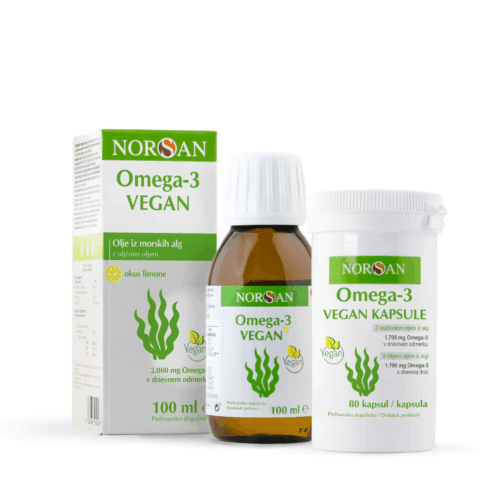 NORSAN olje iz alg je 100 % rastlinsko olje in je zato primerno za vegansko prehrano. Olje iz alg se predeluje v ločenih obratih kot ribje olje. Ker je bogato z morskimi Omega-3 DHA in EPA maščobnimi kislinami, ponuja NORSAN olje iz alg pravo vegansko alternativo uživanju rib ali ribjih olj.