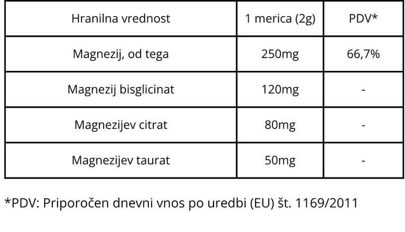 - 3 organske magnezijeve spojine (bisglicinat, citrat, taurat)