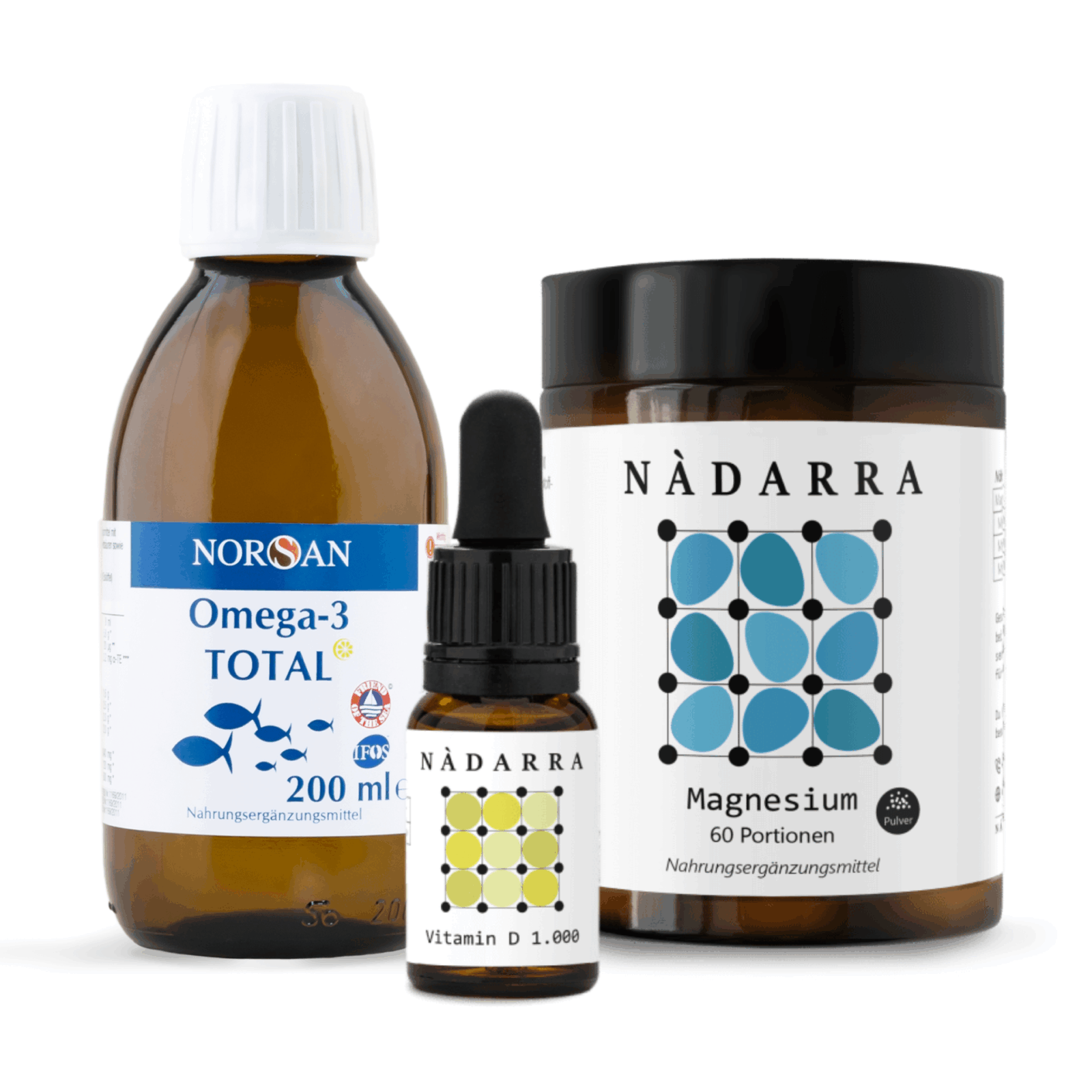 Imuno set vključuje 3 prehranska dopolnila za podporo imunskemu sistemu: Norsan Omega-3 Total olje, nadarra vitamin D3 in nadarra Magnezij v prahu ali kapsulah. Usklajena kombinacija več mesecev podpira normalno delovanje imunskega sistema.